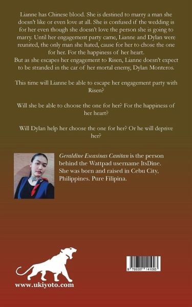 Lianne has Chinese blood. She is destined to marry a man she doesn't like or even love at all. She is confused if the wedding is for her even though she doesn't love the person she is going to marry. Until her engagement party came, Lianne and Dylan were reunited, the only man she hated, cause for her to chose the one for her. For the happiness of her heart. But as she escapes her engagement to Risen, Lianne doesn't expect to be stranded in the car of her mortal enemy, Dylan Monteros. This time will Lianne be able to escape her engagement party with Risen? Will she be able to choose the one for her? For the happiness of her heart? Will Dylan help her choose the one for her? Or he will deprive her?