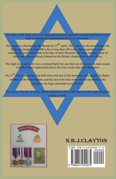 By April, 1945, there were sixty-thousand prisoners housed in a camp built for no more than ten-thousand, a testament to Hitler's viciousness. The camp was liberated by the British on 15th April, 1945, and over the next 30 days the death rate dropped from 500 a day to less than 100 a day. More and more people continued to meet with death in the face of their liberation for many reasons, some of which has been needlessly blamed on the British, despite their heroic efforts. The fight to preserve life was a constant battle but one that was often lost. In total around 14,000 of those imprisoned died in the four weeks after their liberation. On 21st May a ceremony was held where the last of the memories were purged by flame: symbols of the Nazi Regime, and the last of the huts were torched and burnt to the ground in one huge emotional wave of relief. This story is but one of many, which commences in the latter part of 1944, and concludes in May of 1945.