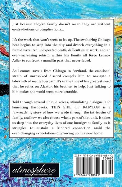 Just because they're family doesn't mean they are without contradictions or complications... It's the week that won't seem to let up. The sweltering Chicago heat begins to seep into the city and drench everything in a humid haze. An unexpected death, difficulties at work, and an ever-increasing schism within his family all force Lennox Adler to confront a maudlin past that never faded. As Lennox travels from Chicago to Portland, the emotional strain of unresolved discord compels him to navigate a labyrinth of mental despair. It's in the time of his greatest need that he relies on Alastor, his brother, to help. Just talking to him makes the world seem more bearable. Told through several unique voices, stimulating dialogue, and lamenting flashbacks, This Side of Babylon is a far-reaching story of how we wade through the intricacies of family, and how we also choose who is part of that unit. It takes us deep into the everyday lives of one immigrant family as it struggles to sustain a kindred connection amid the ever-changing expectations of growing up in a new home.