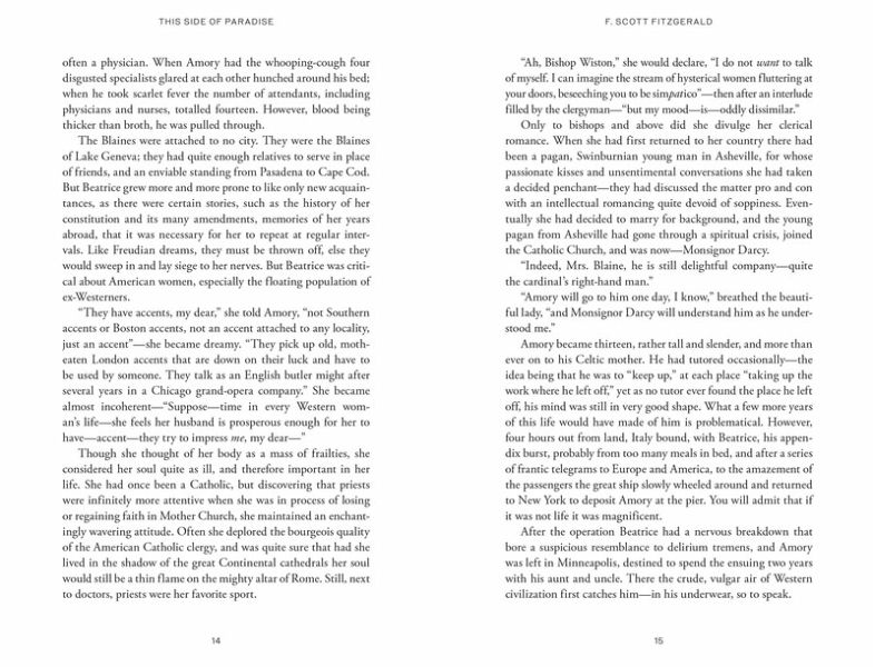 F. Scott Fitzgerald's debut novel of love and greed, now repackaged with a beautifully designed jacket by noted illustrator Malika Favre.This Side of Paradise tells the story of Amory Blaine, the only child of wealthy parents, whose journey from adolescence to adulthood follows him from prep school through to Princeton University, where his literary talents flourish, in contrast to his academic failure. A sequence of love affairs with beautiful young women is fatally damaged by the collapse of his family's fortune, and the novel ends with him poised to face the challenge of making his own way in the world.