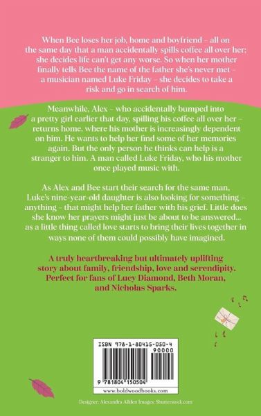 The BRAND NEW heartfelt book club pick from bestseller Debbie Howells. A truly heartbreaking but ultimately uplifting story about family, friendship, love and serendipity. Perfect for fans of Lucy Diamond, Beth Moran, and Nicholas Sparks. When Bee loses her job, home and boyfriend - all on the same day that a man accidentally spills coffee all over her; she decides life can't get any worse. So when her mother finally tells Bee the name of the father she's never met - a musician named Luke Friday - she decides to take a risk and go in search of him. Meanwhile, Alex - who accidentally bumped…mehr