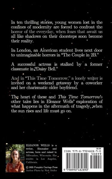 In London, an American student lives next door to unimaginable horrors in "The Couple in 2B." A successful actress is stalked by a former classmate in "Daisy Bell." And in "This Time Tomorrow," a writer is invited on a weekend getaway by a coworker and her charismatic older boyfriend. With the suspense of Alfred Hitchcock and introspection of Rod Serling, the heart of these and This Time Tomorrow's other tales lies in Eleanor Wells' exploration of the aftermath of sorrow, when the sun rises and life must go on.