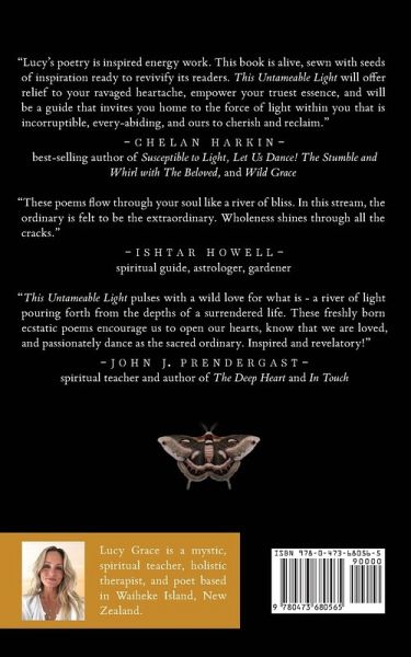 "Lucy's poems shine with the light of deeply embodied spirit. A dance of light upon the land." Adyashanti This Untameable Light is here to remind you of your inherent wholeness and bring forgiveness, ease, humour and reverence to the sacred mess of being human. Alongside the beauty of all the ways we are so much more than just human. We are all whole, and broken. All stumbling, and immensely powerful. We all long for love, and long to know we are not totally messing up this precious existence. This Untameable Light celebrates our humanity as part of our divinity. The mystical and mundane of us. The profound and the profane. It calls us into deep belonging - exactly as we are - and reminds us of the perpetual wink of existence. This Untameable Light has one message: all of you is deeply loved by life - exactly as you are. You are precious, and this life is a gift, to be lived deeply, fully and unapologetically. Praise for This Untameable Light: "Lucy Grace's This Untameable Light pulses with a wild love for what is - a river of light pouring forth from the depths of a surrendered life. These freshly born ecstatic poems encourage us to open our hearts, know that we are loved, and passionately dance as the sacred ordinary. Inspired and revelatory!" John J. Prendergast, author of The Deep Heart and In Touch "Lucy's poetry is inspired energy work. Not just a short-lived spark like an ember that just as soon dissolves back into the night, true poetry can have a profound and lasting impact on consciousness. Lucy is a true poet, an open vessel through which shimmering grace flows. And a poem from this kind of poet, more than a pleasant arrangement of words, is a portal. With unseen genius it can open the reader to a long-hidden light or awaken an unnoticed truth. Poetry from the right source is arguably one of the most potent vehicles for transformation. This book is alive, sewn with seeds of inspiration ready to revivify its readers. This Untameable Light will offer relief to your ravaged heartache, empower your truest essence, and will be a guide that invites you home to the force of light within you that is incorruptible, every-abiding and ours to cherish and reclaim." Chelan Harkin, Best-Selling author and poet of Susceptible to Light, Let Us Dance! The Stumble and Whirl with The Beloved and Wild Grace. "These poems flow through your soul like a river of bliss. In this stream, the ordinary is felt to be the extraordinary. Wholeness shines through all the cracks." Ishtar Howell (Spiritual Guide, Astrologer, Gardener) This Untamable Light has the feel of love notes passed from poet to muse; a heart proclaiming its truth and devotion in the intimate language of passion. Fortunately, Lucy Grace's muse is the divine substance of life, and she revels in the naked honesty permitted, and indeed fostered, in this relationship. Her words are a healing celebration of living one's divine truth. Mary Reed, award-winning author of Unwitting Mystic and Humanity's Epic Awakening. ¿¿"Lucy's poems shine with the light of deeply embodied spirit. A dance of light upon the land." Adyashanti, Spiritual Teacher and Author