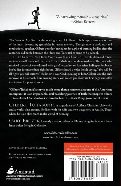 Gilbert Tuhabonye is a survivor. More than ten years ago, he lay buried under a pile of burning bodies. The centuries-old battle between Hutu and Tutsi tribes had come to Gilbert's school. Fueled by hatred, the Hutus forced more than a hundred Tutsi children and teachers into a small room and used machetes to beat most of them to death. The unfortunate ones who survived the beating were doused with gasoline and set on fire. After hiding under burning bodies for over eight hours, Gilbert heard a voice inside saying, "You will be all right; you will survive." He knows it was God speaking to him. Gilbert was the lone survivor of the genocide, and thanks his enduring faith in God for his survival. Today, having forgiven his enemies and moved forward with his life, he is a world-class athlete, running coach and celebrity in his new hometown of Austin, Texas. The road to this point has been a tough one, but Gilbert uses his survival instincts to spur him on to the goal of qualifying for the 2008 Olympic Summer Games. THIS VOICE IN MY HEART will portray not only the horrific event itself, but will be a catalyst for people to understand real forgiveness and the gift of faith in God.