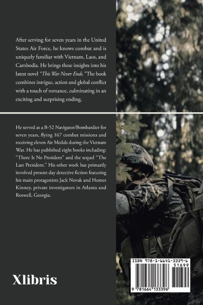 After serving for seven years in the United States Air Force, he knows combat and is uniquely familiar with Vietnam, Laos, and Cambodia. He brings these insights into his latest novel "This War Never Ends." The book combines intrigue, action and global conflict with a touch of romance, culminating in an exciting and surprising ending.