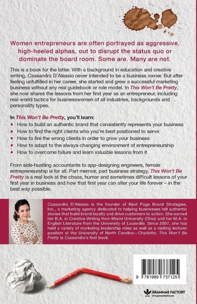 Women entrepreneurs are often portrayed as aggressive, high-heeled alphas, out to disrupt the status quo or dominate the board room. Some are. Many are not. This is a book for the latter. With a background in education and creative writing, Cassandra D'Alessio never intended to be a business owner. But after feeling unfulfilled in her career, she started and grew a successful marketing business without any real guidebook or role model. In This Won't Be Pretty, she now shares the lessons from her first year as an entrepreneur, including real-world tactics for businesswomen of all industries, backgrounds and personality types. In This Won't Be Pretty, you'll learn: How to build an authentic brand that consistently represents your business How to find the right clients who you're best positioned to serve How to fire the wrong clients in order to grow your business How to adapt to the always-changing environment of entrepreneurship How to overcome failure and learn valuable lessons from it From side-hustling accountants to app-designing engineers, female entrepreneurship is for all. Part memoir, part business strategy, This Won't Be Pretty is a real look at the chaos, humor and sometimes difficult lessons of your first year in business and how that first year can alter your life forever - in the best way possible.