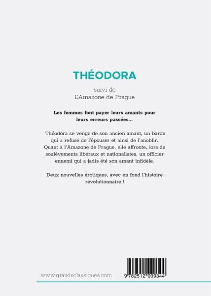 Les femmes font payer leurs amants pour leurs erreurs passées... POUR UN PUBLIC AVERTI. Théodora se venge de son ancien amant, un baron qui a refusé de l'épouser et ainsi de l'anoblir. Quant à l'Amazone de Prague, elle affronte, lors de soulèvements libéraux et nationalistes, un officier ennemi qui a jadis été son amant infidèle. Deux nouvelles érotiques, avec en fond l'histoire révolutionnaire ! EXTRAIT Par une maussade journée de novembre, aussi désagréable que la nouvelle qüelle apportait, le baron Andor entra chez Théodora Wasili et lui annonça qüil allait la marier. Théodora était une villageoise, et certainement la plus belle, la plus fière entre toutes ces créatures qui, aujourd¿hui encore, trahissent leur origine roumaine. La première fois que le baron l¿avait vue, elle dansait dans un cabaret ; il avait gagné son c¿ur en lui offrant une paire de colliers de gros corail rouge, mais faux ; il lui avait donné en outre un petit pot de fard acheté chez un juif marchand de bric-à-brac ; car toutes ces filles d¿Eve aiment à se farder. Plus tard, le baron lui fit de plus riches cadeaux. Elle adopta les allures d¿une boyarine et prit bientôt les habitudes d¿une petite dame distinguée et gâtée. Au moment où les paroles du baron vinrent la frapper comme l¿éclair, elle était allongée sur un divan turc, chaussée de pantoufles brodées d¿or, vêtue d¿une kazabaïka de fourrure doublée de velours rouge et garnie de martre ; elle souleva sa tête à l¿expression sévère, aux grands yeux sombres, chargée d¿une opulente chevelure noire ; elle ressemblait presque à un démon. À PROPOS DE L'AUTEUR Léopold von Sacher-Masoch (1836-1895) est un écrivain et historien né en Autriche et aux origines cosmopolites. Son ¿uvre est principalement constituée de contes nationaux et de romans historiques regroupés en cycles. Il s'y trouve généralement une héroïne dominatrice ou sadique, et le sens narratif vient des légendes et histoires du folklore slave, ayant bercé d'enfance de l'auteur. Le terme « masochisme » est forgé à partir du patronyme de Sacher-Masoch par le psychiatre Krafft-Ebing dans Psychopathia Sexualis (publié en 1886), et est considéré par celui-ci comme une pathologie. Pour Gilles Deleuze, qui a analysé et popularisé l'auteur, son ¿uvre est pornologique, car projetant la pornographie dans le champ philosophique. À PROPOS DE LA COLLECTION Retrouvez les plus grands noms de la littérature érotique dans notre collection Grands classiques érotiques. Autrefois poussés à la clandestinité et relégués dans « l'Enfer des bibliothèques », les auteurs de ces ¿uvres incontournables du genre sont aujourd'hui reconnus mondialement. Du Marquis de Sade à Alphonse Momas et ses multiples pseudonymes, en passant par le lyrique Alfred de Musset ou la féministe Renée Dunan, les Grands classiques érotiques proposent un catalogue complet et varié qui contentera tant les novices que les connaisseurs.