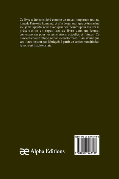 Théologie hindoue. Le Kama soutra, un livre classique, a été considéré comme important tout au long de l'histoire de l'humanité, et pour que cet ouvrage ne soit jamais oublié, chez Alpha Editions, nous avons fait des efforts pour sa préservation en rééditant ce livre dans un format moderne pour les générations présentes et futures. Tout ce livre a été reformaté, retapé et conçu. Ces livres ne sont pas constitués de copies numérisées de leur ¿uvre originale et le texte est donc clair et lisible.