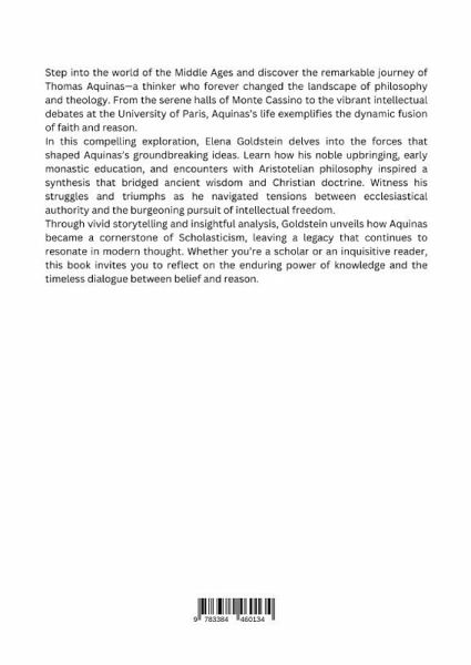 Step into the world of the Middle Ages and discover the remarkable journey of Thomas Aquinas-a thinker who forever changed the landscape of philosophy and theology. From the serene halls of Monte Cassino to the vibrant intellectual debates at the University of Paris, Aquinas's life exemplifies the dynamic fusion of faith and reason.In this compelling exploration, Elena Goldstein delves into the forces that shaped Aquinas's groundbreaking ideas. Learn how his noble upbringing, early monastic education, and encounters with Aristotelian philosophy inspired a synthesis that bridged ancient wisdom and Christian doctrine. Witness his struggles and triumphs as he navigated tensions between ecclesiastical authority and the burgeoning pursuit of intellectual free-dom.Through vivid storytelling and insightful analysis, Goldstein unveils how Aquinas became a cornerstone of Scholasticism, leaving a legacy that continues to resonate in modern thought. Whether you're a scholar or an inquisitive reader, this book invites you to reflect on the enduring power of knowledge and the timeless dialogue between belief and reason.