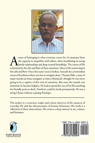 A sense of belonging is what everyone craves for. It emanates from the capacity to empathize with others, often manifesting in strong family relationships and deep-rooted friendships. The course of life is dictated by the ebb and flow of these emotions. Most of the stories depict this ebb and flow. Once this outer crust is broken, beneath lies a bottomless ocean of loneliness where one has to navigate alone. Thomas Eldo, a man of many moods (at times arrogant, at times whimsical), thought he was never going to be a captive of this web of emotions. But once the mantle was shattered, he became helpless. He had to spend the rest of his life searching for friendly ports to dock. Nowhere could he berth permanently. He was a tiring Ulysses without a pining Penelope.