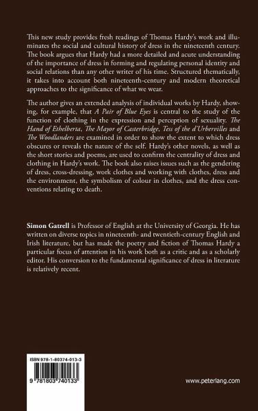 This new study provides fresh readings of Thomas Hardy's work and illuminates the social and cultural history of dress in the nineteenth century. The book argues that Hardy had a more detailed and acute understanding of the importance of dress in forming and regulating personal identity and social relations than any other writer of his time. Structured thematically, it takes into account both nineteenth-century and modern theoretical approaches to the significance of what we wear.