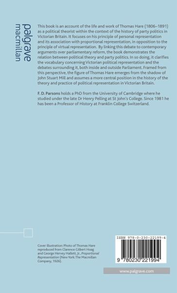This book is a history of the emergence and development of the concept of proportional representation and its relation to political theory within the context of nineteenth-century British party politics focusing on Thomas Hare (1806-1891).
