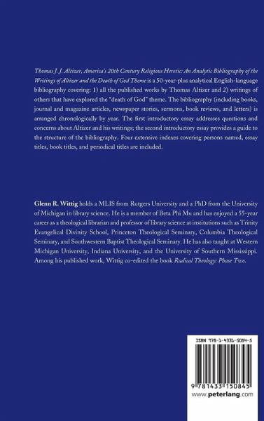 Thomas J. J. Altizer, America's 20th Century Religious Heretic: An Analytic Bibliography of the Writings of Altizer and the Death of God Theme is a 50-year-plus analytical English-language bibliography covering: 1) all the published works by Thomas Altizer and 2) writings of others that have explored the "death of God" theme. The bibliography (including books, journal and magazine articles, newspaper stories, sermons, book reviews, and letters) is arranged chronologically by year. The first introductory essay addresses questions and concerns about Altizer and his writings; the second introductory essay provides a guide to the structure of the bibliography. Four extensive indexes covering persons named, essay titles, book titles, and periodical titles are included.