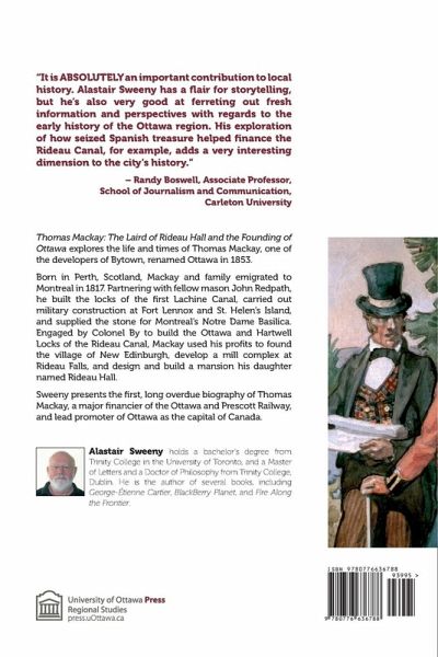 This is the first, long overdue biography of Thomas Mackay, a major promoter of Ottawa as the capital of Canada. Mackay built the Ottawa and Hartwell Locks of the Rideau Canal, founded New Edinburgh and the Rideau Falls mill complex, built Rideau Hall, and financed the Ottawa and Prescott Railway.