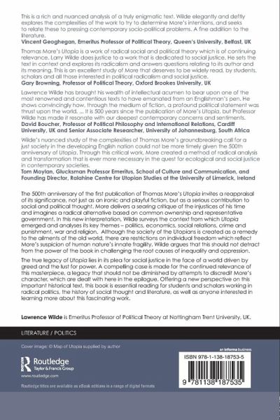 Wilde's nuanced study of the complexities of Thomas More's groundbreaking call for a just society in the developing English nation could not be more timely given the 500th anniversary of Utopia. Through this critical work, More created a method of radical analysis and transformation that is ever more necessary in the quest for ecological and social justice in contemporary societies.