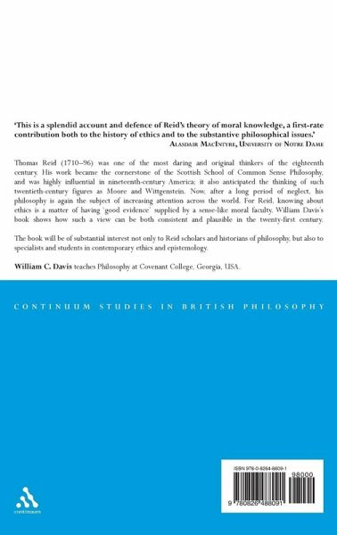 Thomas Reid (1710-96) was one of the most daring and original thinkers of the eighteenth century. His work became the cornerstone of the Scottish School of Common Sense Philosophy, and was highly influential in nineteenth-century America; it also anticipated the thinking of such twentieth-century figures as Moore and Wittgenstein. Now, after a long period of neglect, his philosophy is again the subject of increasing attention across the world. For Reid, knowing about ethics is a matter of having 'good evidence' supplied by a sense-like moral faculty. William Davis's book shows how such a view can be both consistent and plausible in the twenty-first century. Thomas Reid's Ethics begins by characterizing the state of moral epistemology at the time when Reid was writing. It goes on to recount Reid's central claims about the moral sense, and describes the various problems that confront those who would explain and defend his views. Davis lays the foundation for resolving these difficulties by detailing an epistemological conception of evidence which parallels the legal conception of evidence used by the Scottish courts of Reid's day. He then shows how Reid's claims about evidence and self-evidence are best understood in light of this legal model. The book concludes by responding to recent worries about 'moral sense' theories, and offers a final assessment of the success of Reid's ethical project. The book will be of substantial interest not only to Reid scholars and historians of philosophy, but also to specialists and students in contemporary ethics.