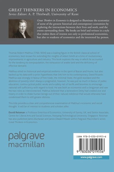 Thomas Robert Malthus (1766-1834) was a leading figure in the British classical school of economics, best-known for extending the insights of Adam Smith at a time of revolutionary improvements in agriculture and industry. This book explores the way in which he accounted for the tendency to overpopulation, the exhaustion of arable land and the deficiency of effective demand.
