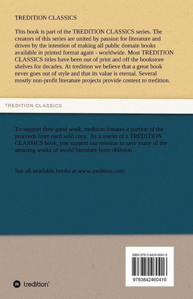 This book is part of the TREDITION CLASSICS series. The creators of this series are united by passion for literature and driven by the intention of making all public domain books available in printed format again - worldwide. At tredition we believe that a great book never goes out of style. Several mostly non-profit literature projects provide content to tredition. To support their good work, tredition donates a portion of the proceeds from each sold copy. As a reader of a TREDITION CLASSICS book, you support our mission to save many of the amazing works of world literature from oblivion.