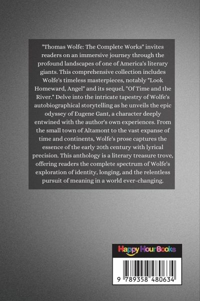 "Thomas Wolfe: The Complete Works" invites readers on an immersive journey through the profound landscapes of one of America's literary giants. This comprehensive collection includes Wolfe's timeless masterpieces, notably "Look Homeward, Angel" and its sequel, "Of Time and the River." Delve into the intricate tapestry of Wolfe's autobiographical storytelling as he unveils the epic odyssey of Eugene Gant, a character deeply entwined with the author's own experiences. From the small town of Altamont to the vast expanse of time and continents, Wolfe's prose captures the essence of the early 20th century with lyrical precision. This anthology is a literary treasure trove, offering readers the complete spectrum of Wolfe's exploration of identity, longing, and the relentless pursuit of meaning in a world ever-changing.