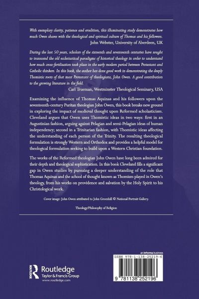 Examining the influence of Thomas Aquinas and his followers upon the seventeenth century Puritan theologian John Owen, this book breaks new ground in exploring the impact of medieval thought upon Reformed scholasticism. Cleveland argues that Owen uses Thomistic ideas in two ways: first in an Augustinian fashion arguing against Pelagian and semi-Pelagian ideas of human independency; second in a Trinitarian fashion, with Thomistic ideas affecting the understanding of each person of the Trinity. The resulting theological formulation is strongly Western and Orthodox and provides a helpful model for theological formulation seeking to build upon a Western Christian foundation. The works of the Reformed theologian John Owen have long been admired for their depth and theological sophistication. In this book Cleveland fills a significant gap in Owen studies by pursuing a deeper understanding of the role that Thomas Aquinas and the school of thought known as Thomism played in Owen's theology, from his works on providence and salvation by the Holy Spirit to his Christological work.