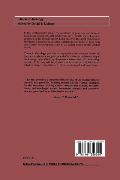 Thoracic Oncology provides an up-to-date and concise review of the various thoracic neoplasms and offers a better understanding of the biology, natural history, diagnosis and treatment of these malignancies. This book will be of particular interest to clinicians interested in thoracic neoplasms, to better understand and treat them.