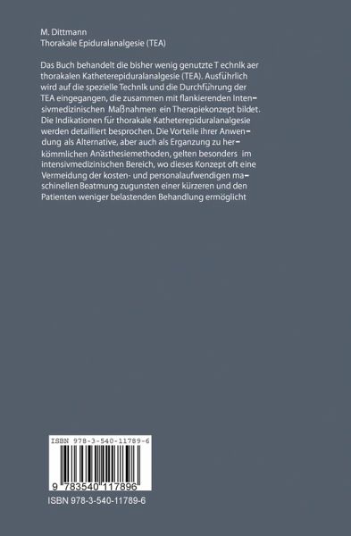 Anhand 2 Gruppen gut vergleichbarer Patienten mit Rip penserienfrakturen des Basler Krankengutes konnte Ditt mann eindeutig die Vorteile der thorakalen Epiduralanä sthesie belegen. Die eine Patientengruppe wurde mit thorakaler Epiduralanästhesie - meist in Verbindung mit "ep AP" (continuous positive airway pressure ) mittels PEEP-weaner -, die andere "konventionell" durch Intuba tion und PEEP (positive endexspiratory pressure ) von innen "stabilisiert". Intubationsdauer , Verweilen auf der Intensivpflegestation und totale Hospitalisationszeit der mit TEA behandelten Patienten waren signifikant kürzer. Es ist deshalb verdienstvoll, daß Dittmann mit der vorlie genden Theorie und Anwendungsprobleme des Alltags gleichermaßen berücksichtigenden Monographie diese Erfahrungen mit didaktischem Geschick allgemein zugäng lich macht. Leider steht einer generellen Anwendung der TEA die Notwendigkeit eines kooperativen Patienten im Wege. Dies sollte jedoch nicht davon abhalten, sie bei den zahlrei chen Patienten, die einer Behandlung mit TEA zugänglich sind, anzuwenden. Sie hat den nicht zu unterschätzenden Vorteil, einen möglichst physiologischen Atemmechanis mus zu erhalten und vermeidet damit viele Probleme der Intubationsbeatmung mit PEEP. Mit Überzeugung möchte ich der aus der Praxis geschriebe nen Anleitung - sie stellt gleichzeitig einen wertvollen Erfahrungsbericht dar - eine breite und vor allem eine auf geschlossene Leserschaft wünschen. Martin Allgöwer Vorwort Das vorliegende Kliniktaschenbuch spiegelt die vergange nen zehn Jahre im Kantonsspital Basel wider. Es sei dies der Dank an alle Schwestern, Pfleger und ärztlichen Mitar beiter der Basler wie der Bad Säckinger Intensivstation und Anästhesieabteilung.