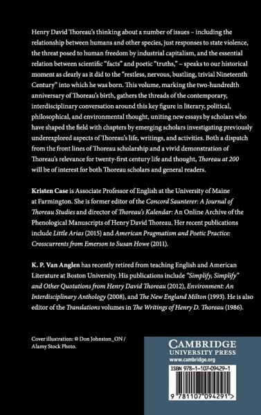 Henry David Thoreau's thinking about a number of ¿issues - including the relationship between humans and other species, just responses to state violence, the threat posed to human freedom by industrial capitalism, and the essential relation between scientific 'facts' and poetic 'truths' - speaks to our historical moment as clearly as it did to the 'restless, nervous, bustling, trivial Nineteenth Century' into which he was born. This volume, marking the two-hundredth anniversary of Thoreau's birth, gathers the threads of the contemporary, interdisciplinary conversation around this key figure in literary, political, philosophical, and environmental thought, uniting new essays by scholars who have shaped the field with chapters by emerging scholars investigating previously underexplored aspects of Thoreau's life, writings, and activities. Both a dispatch from the front lines of Thoreau scholarship and a vivid demonstration of Thoreau's relevance for twenty-first-century life and thought, Thoreau at 200 will be of interest for both Thoreau scholars and general readers.