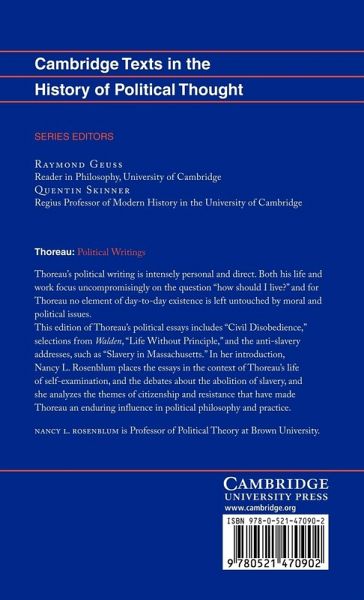 In her introduction, Nancy L. Rosenblum places the essays in the context of Thoreau's life of self-examination, and the debates about the abolition of slavery, and she analyzes the themes of citizenship and resistance that have made Thoreau an enduring influence in political philosophy and practice.