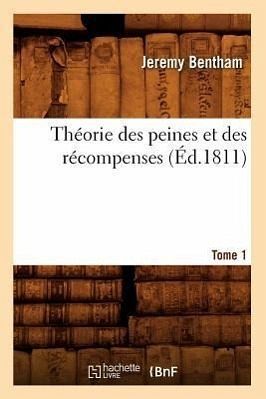 Théorie des peines et des récompenses. Tome 1 /, par M. Jérémie Bentham, ... rédigée en françois, d'après les manuscrits, par M. Ét. Dumont, ... Date de l'édition originale: 1811 Le présent ouvrage s'inscrit dans une politique de conservation patrimoniale des ouvrages de la littérature Française mise en place avec la BNF. HACHETTE LIVRE et la BNF proposent ainsi un catalogue de titres indisponibles, la BNF ayant numérisé ces oeuvres et HACHETTE LIVRE les imprimant à la demande. Certains de ces ouvrages reflètent des courants de pensée caractéristiques de leur époque, mais qui seraient aujourd'hui jugés condamnables. Ils n'en appartiennent pas moins à l'histoire des idées en France et sont susceptibles de présenter un intérêt scientifique ou historique. Le sens de notre démarche éditoriale consiste ainsi à permettre l'accès à ces oeuvres sans pour autant que nous en cautionnions en aucune façon le contenu. Pour plus d'informations, rendez-vous sur www.hachettebnf.fr