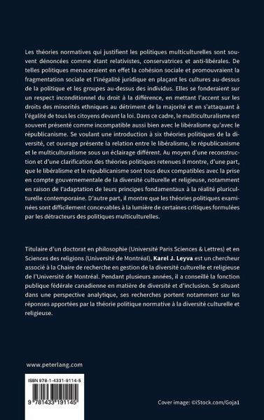 Titulaire d¿un doctorat en philosophie (Université Paris Sciences & Lettres) et en Sciences des religions (Université de Montréal), Karel J. Leyva est un chercheur associé à la Chaire de recherche en gestion de la diversité culturelle et religieuse de l¿Université de Montréal. Pendant plusieurs années, il a conseillé la fonction publique fédérale canadienne en matière de diversité et d¿inclusion. Se situant dans une perspective analytique, ses recherches portent notamment sur les réponses apportées par la théorie politique normative à la diversité culturelle et religieuse.