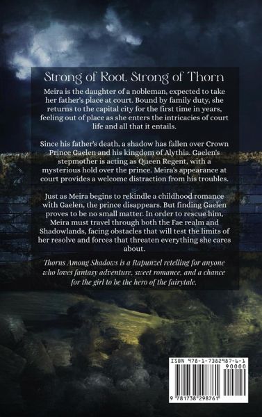 Strong of Root, Strong of Thorn Meira is the daughter of a nobleman, expected to take her father's place at court. Bound by family duty, she returns to the capital city for the first time in years, feeling out of place as she enters the intricacies of court life and all that it entails. Since his father's death, a shadow has fallen over Crown Prince Gaelen and his kingdom of Alythia. Gaelen's stepmother is acting as Queen Regent, with a mysterious hold over the prince. Meira's appearance at court provides a welcome distraction from his troubles. Just as Meira begins to rekindle a childhood romance with Gaelen, the prince disappears. But finding Gaelen proves to be no small matter. In order to rescue him, Meira must travel through both the Fae realm and Shadowlands, facing mysterious mazes, mud monsters and more that will test the limits of her resolve and forces that threaten everything she cares about. Thorns Among Shadows is a Rapunzel retelling for anyone who loves fantasy adventure, sweet romance, and a chance for the girl to be the hero of the fairytale.