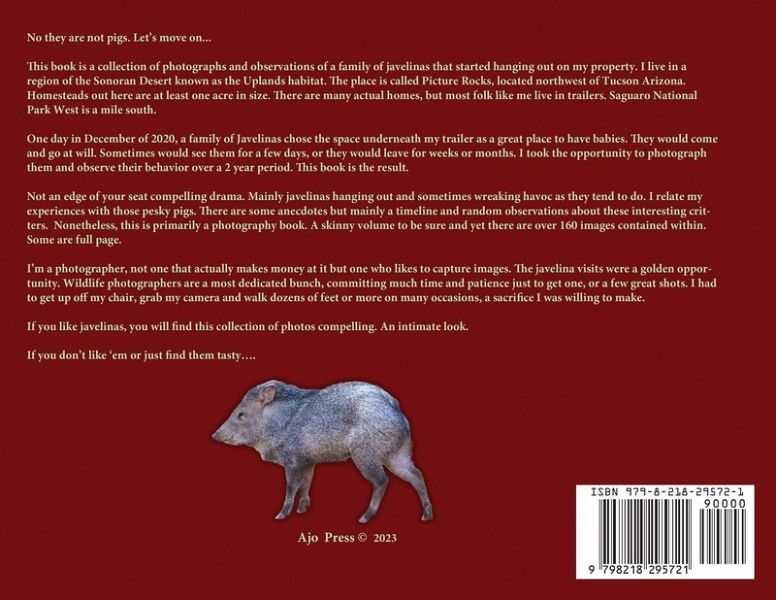 This is a photographic study of javelinas that have made frequent visits to my property. In addition to the photographs, I made observations about their actions. They are interesting creatures and they behave like no other.
