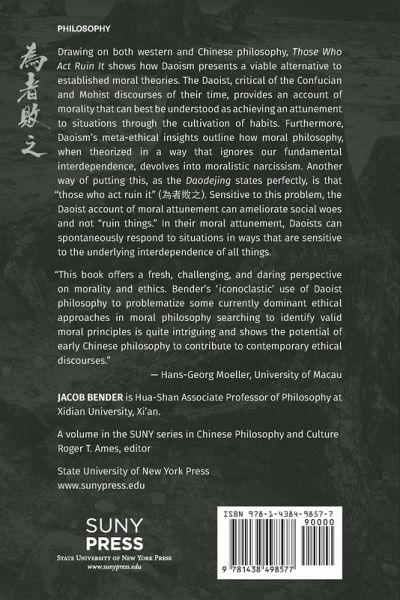 Presents an iconoclastic account of morality and moral discourse from the perspective of Daoist philosophy. Drawing on both western and Chinese philosophy, Those Who Act Ruin It shows how Daoism presents a viable alternative to established moral theories. The Daoist, critical of the Confucian and Mohist discourses of their time, provides an account of morality that can best be understood as achieving an attunement to situations through the cultivation of habits. Furthermore, Daoism's meta-ethical insights outline how moral philosophy, when theorized in a way that ignores our fundamental interdependence, devolves into moralistic narcissism. Another way of putting this, as the Daodejing states perfectly, is that "those who act ruin it" (¿¿¿¿). Sensitive to this problem, the Daoist account of moral attunement can ameliorate social woes and not "ruin things." In their moral attunement, Daoists can spontaneously respond to situations in ways that are sensitive to the underlying interdependence of all things.