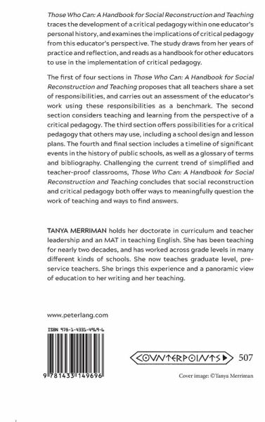 Those Who Can: A Handbook for Social Reconstruction and Teaching traces the development of a critical pedagogy within one educator's personal history, and examines the implications of critical pedagogy from this educator's perspective. The study draws from her years of practice and reflection, and reads as a handbook for other educators to use in the implementation of critical pedagogy.