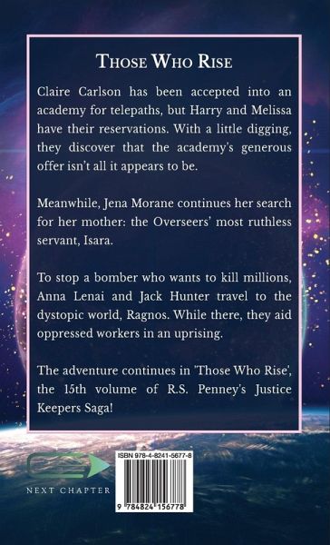 Claire Carlson has been accepted into an academy for telepaths, but Harry and Melissa have their reservations. With a little digging, they discover that the academy's generous offer isn't all it appears to be. Meanwhile, Jena Morane continues her search for her mother: the Overseers' most ruthless servant, Isara. To stop a bomber who wants to kill millions, Anna Lenai and Jack Hunter travel to the dystopic world, Ragnos. While there, they aid oppressed workers in an uprising. The adventure continues in 'Those Who Rise', the 15th volume of R.S. Penney's Justice Keepers Saga!