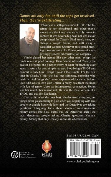 Games are only fun until the cops get involved. Then, they're exhilarating. Chasity is a self-proclaimed THOT. The Internet is her chessboard and other men's money are the kings she so terribly loves to capture. It was never a big deal, nor was it ever complicated for Chasity. Find lonely men, exchange a couple favors, and walk away a wealthier woman. She never anticipated meeting someone quite like Vinnie, owner of a surprisingly successful construction company. Vinnie played her games like any other man, except the funds never stopped coming. Then, Vinnie offered Chasity the deal of a lifetime: she'd never worry or want for anything ever again in return for one, simple request. Stop being a THOT and commit to only him. Except it wasn't that simple. For the first time in Chasity's life, she had met someone, someone who made her feel things she'd never experienced for a man before: love. She was in love with Torian, a pretty boy from the hood with lots of game. Upon an instantaneous connection, Torian was her match, her mirror self. He was the male version of a THOT, and that felt like home. Chasity did what she does best: she deceived everyone, but things never go according to plan when you're playing with real people. A double homicide later and the Detectives are asking questions. Intriguing facts about Vinnie's not-so-innocent money comes into play. Turns out, the Detectives aren't the most dangerous people asking Chasity questions Vinnie's money. Money that only Chasity knows its whereabouts.