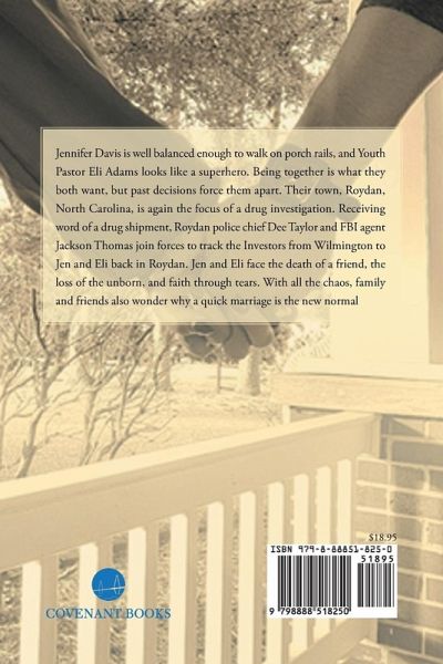 Jennifer Davis is well balanced enough to walk on porch rails, and Youth Pastor Eli Adams looks like a superhero. Being together is what they both want, but past decisions force them apart. Their town, Roydan, North Carolina, is again the focus of a drug investigation. Receiving word of a drug shipment, Roydan police chief Dee Taylor and FBI agent Jackson Thomas join forces to track the Investors from Wilmington to Jen and Eli back in Roydan. Jen and Eli face the death of a friend, the loss of the unborn, and faith through tears. With all the chaos, family and friends also wonder why a quick marriage is the new normal