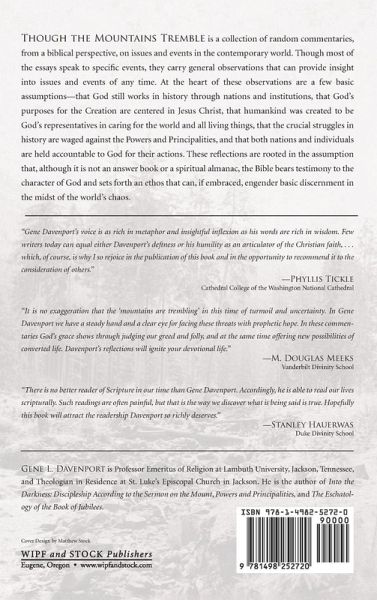 Though the Mountains Tremble is a collection of random commentaries, from a biblical perspective, on issues and events in the contemporary world. Though most of the essays speak to specific events, they carry general observations that can provide insight into issues and events of any time. At the heart of these observations are a few basic assumptions--that God still works in history through nations and institutions, that God's purposes for the Creation are centered in Jesus Christ, that humankind was created to be God's representatives in caring for the world and all living things, that the crucial struggles in history are waged against the Powers and Principalities, and that both nations and individuals are held accountable to God for their actions. These reflections are rooted in the assumption that, although it is not an answer book or a spiritual almanac, the Bible bears testimony to the character of God and sets forth an ethos that can, if embraced, engender basic discernment in the midst of the world's chaos.