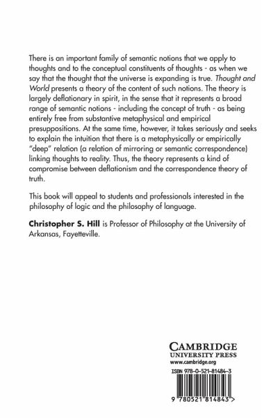 There is an important family of semantic notions that we apply to thoughts and to the conceptual constituents of thoughts - as when we say that the thought that the Universe is expanding is true. Thought and World presents a theory of the content of such notions. The theory is largely deflationary in spirit, in the sense that it represents a broad range of semantic notions - including the concept of truth - as being entirely free from substantive metaphysical and empirical presuppositions. At the same time, however, it takes seriously and seeks to explain the intuition that there is a metaphysically or empirically 'deep' relation (a relation of mirroring or semantic correspondence) linking thoughts to reality. Thus, the theory represents a kind of compromise between deflationism and versions of the correspondence theory of truth. This book will appeal to students and professionals interested in the philosophy of logic and language.