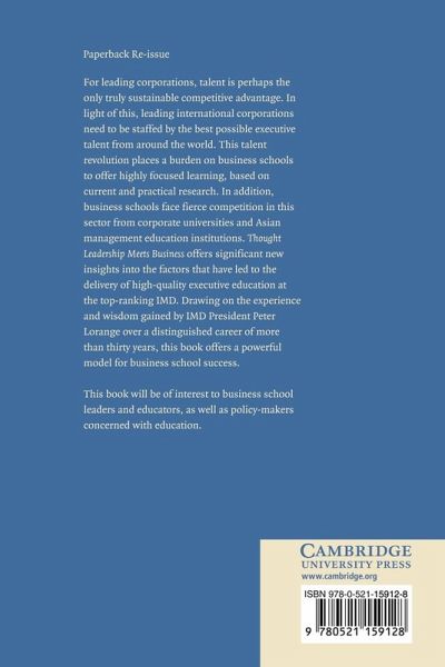 For leading corporations, talent is perhaps the only truly sustainable competitive advantage. In light of this, leading international corporations need to be staffed by the best possible executive talent from around the world. This talent revolution places a burden on business schools to offer highly focused learning, based on practical research. In addition, business schools face fierce competition in this sector, not least from the rapid growth in management education in India and South East Asia. Thought Leadership Meets Business offers significant insights into the factors that have led to the delivery of high-quality executive education at the top-ranking International Institute for Management Development (IMD). Drawing on the experience and wisdom gained by IMD President Peter Lorange over a distinguished career of more than twenty years, this book offers a powerful model for business school success.