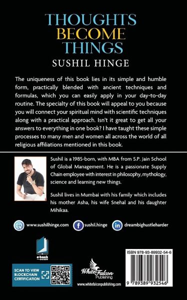 Today in this competitive world, where people are running for money, fame and success, they are losing excess time, health, love and peace of mind. On the other hand, there are people who are peaceful, but in their comfort zone with no goals and purpose in life. The Magic of this book "THOUGHTS BECOME THINGS" will help people to achieve success in life along with the purpose, peace of mind, health, wealth, love, happiness and abundance in all spheres of life. You will find many of the fundamentals from this book already read in the other National Best seller and International Best Seller books. However, the uniqueness of this books lies with the combinations of 3 important aspects which are Spiritual, Scientific and Practical fundamentals. Spirituality to connect your higher self and following the truth by some of the life's amazing secrets. One of the greatest mediation techniques which enables to develop a higher focus and also to see the things as they really are. Such spirituality helps in opening all the mental blocks and makes the law of attraction to manifest things faster. The Secret of Science is already known. Science it is what we are made of and it is what every human being believes. It explains the power of your subconscious mind and conscious mind as a standard operating process on how your mind works. The book gives wisdom on the power of positive thoughts and affirmation process along with gratitude and visualization as the three major powerful processes that help people manifest their dreams and desires. Practical approach is the very basic foundation that we need to apply for everything in a right way. It includes some of the aspects including the power of habit like waking up in Brahmi Muhurta that is at 5 AM. All the basic practical approach are very critical that creates and gives a long term highly impactful results transforming the entire life.