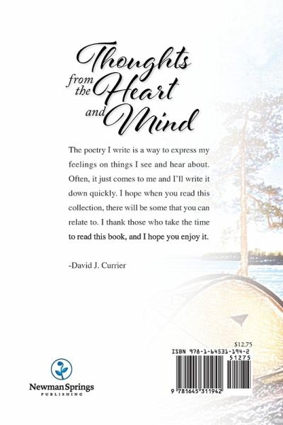 The poetry I write is a way to express my feelings on things I see and hear about. Often, it just comes to me and I’ll write it down quickly. I hope when you read this collection, there will be some that you can relate to. I thank those who take the time to read this book, and I hope you enjoy it. -David J. Currier