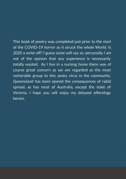 This is a book of eclectic poetry. some humour, some discriptive, obervation as the world passes by. so many thought trip the little grey cells and off go tap tapping away.