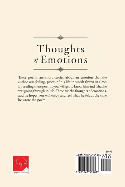 These poems are short stories about an emotion that the author was feeling, pieces of his life in words frozen in time. By reading these poems, you will get to know him and what he was going through in life. These are the thoughts of emotions, and he hopes you will enjoy and feel what he felt at the time he wrote the poem.