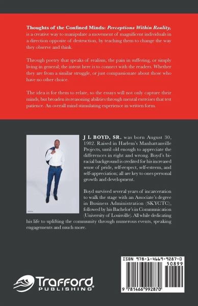 Thoughts of the Confined Minds: Perceptions Within Reality, is a creative way to manipulate a movement of magnificent individuals in a direction opposite of destruction, by teaching them to change the way they observe and think. Through poetry that speaks of realism, the pain in suffering, or simply living in general; the intent here is to connect with the readers. Whether they are from a similar struggle, or just compassionate about those who have no other choice. The idea is for them to relate, so the essays will not only capture their minds, but broaden its reasoning abilities through mental exercises that test patience. An overall mind stimulating experience in written form.