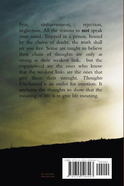 "Unchained Thoughts" is an emotional outlet of stories that pertain to be true to yourself and unchain your thoughts to find ones self.