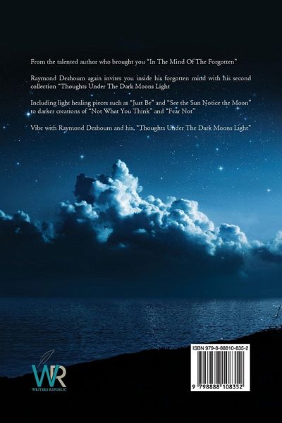 From the talented author who brought you "In The Mind Of The Forgotten" Raymond Deshoum again invites you inside his forgotten mind with his second collection "Thoughts Under The Dark Moons Light Including light healing pieces such as "Just Be" and "See the Sun Notice the Moon" to darker creations of "Not What You Think" and "Fear Not" Vibe with Raymond Deshoum and his, "Thoughts Under The Dark Moons Light"