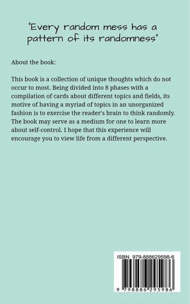 This book contains a compilation of completely random thoughts that have no relation to one another. The book is organized into 16 chapters, each with 12 thoughts; it is intended to assist you with lucid dreaming by presenting some extremely evocative thoughts to help you kickstart your passive dream state. Each chapter is titled after some of history's most bizarre individuals, places, and events, which will aid you in evaluating the success of each chapter and your subconscious control. Every chapter name appears to be completely random, but trust me when I say that it isn't. It has to do with the balance of your mental state. Before proceeding within the chapter, the story of behind the chapter's name should be learned first provided in the end. Because the information learned can be upsetting, reading the entire chapter will help you balance your thoughts and manipulate your subconscious ideas. Some of this stories can be very disturbing for a specific category of audience so I removed the part where a described about each title however you can search about them on the internet