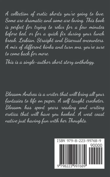 A collection of erotic shorts you're going to love. Some are dramatic and some are loving. This book is perfect for trying to relax for a few minutes before bed, or for a quick fix during your lunch break. Lesbian, Straight and Bisexual encounters. A mix of different kinks and turn ons, you're sure to come back for more. This is a single-author short story anthology.