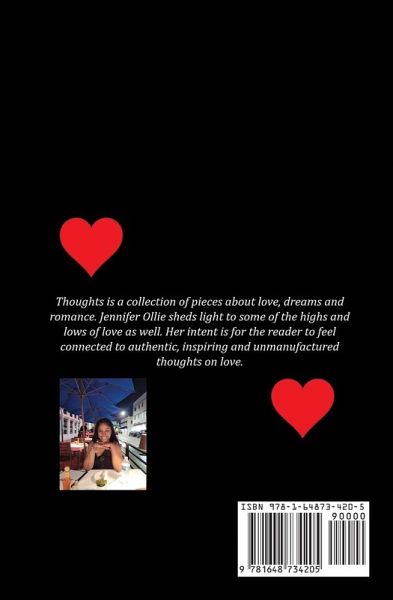 Thoughts is a collection of pieces about love, dreams and romance. This collection also sheds light to some of the highs and lows of love as well. Its' purpose is for the reader to feel connected to authentic, inspiring and unmanufactured thoughts on love.